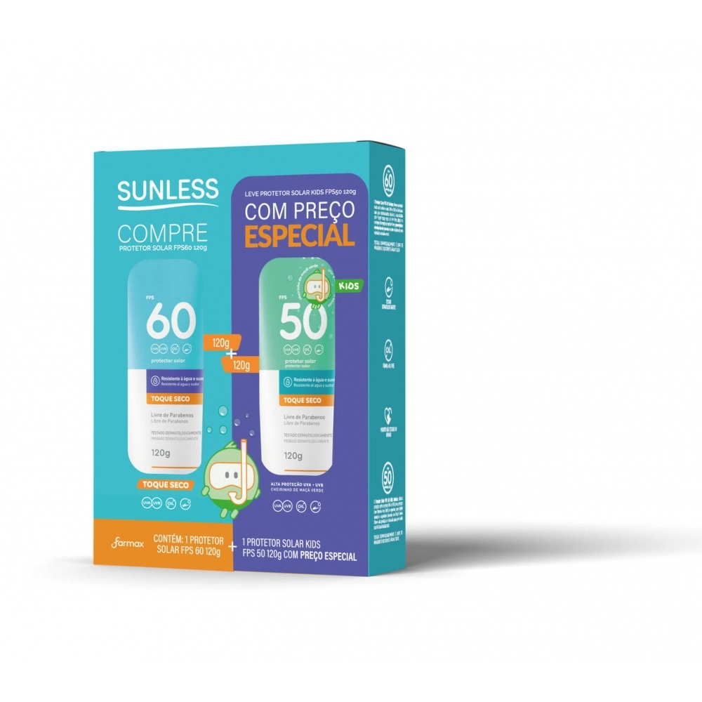 FABRICANTES>KIT PROTETOR SOLAR SUNLESS FPS60 120G + FPS50 KIDS 120G SUNLESS